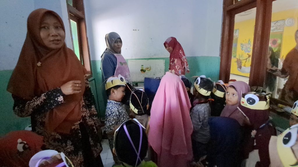 Kegiataan: Senam bersama Anak Indonesia Habat, perkenalan murid baru, makan bekal dengan menu makanan bergizi seimbang, mendengarkan cerita anak mandiri:
